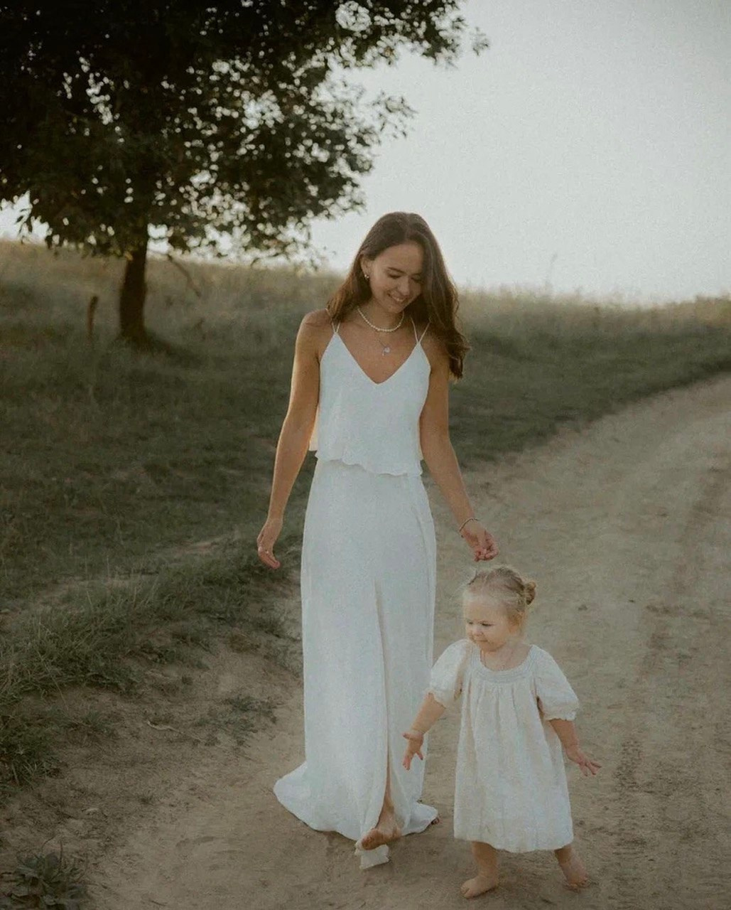 - Мама: сарафан, платье, легкие брюки, свободная рубашка, оверсайз футболка.