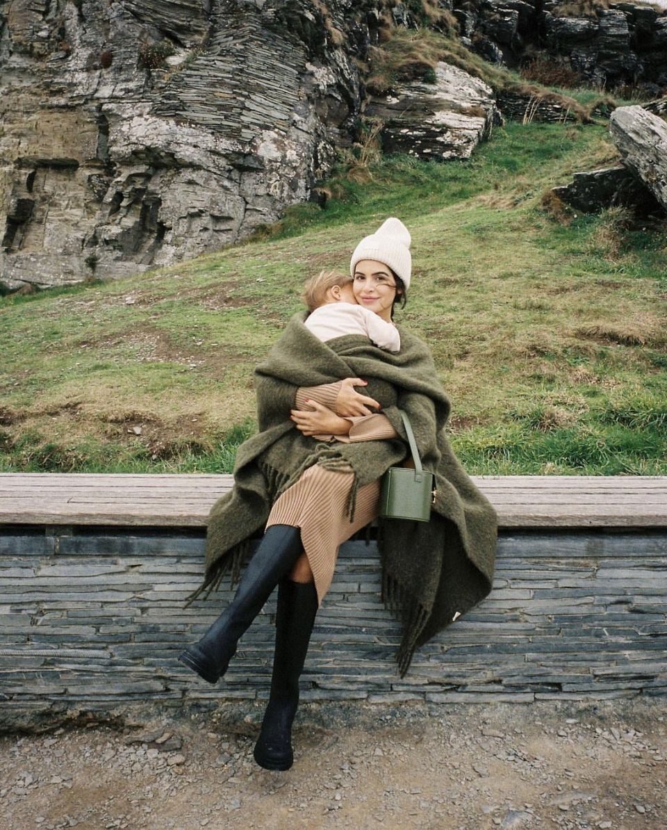 На фотографиях хорошо выглядит комбинирование разных фактур и материалов в одном образе: